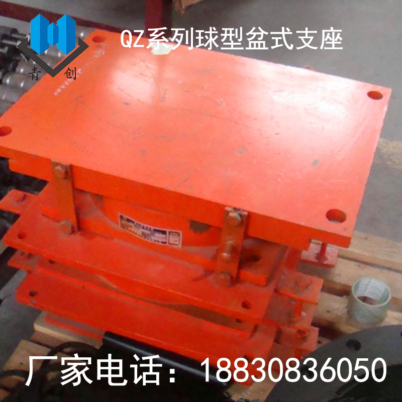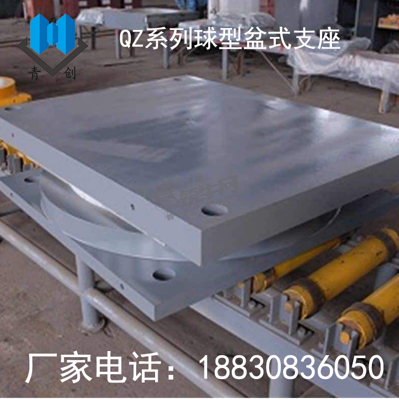 QZ橡膠支座主要由上支座板、下支座板、球形板、聚四氟乙烯滑板(即平面四氟板、球面四氟板)及橡膠擋圈組成一種盆式橡膠支座產(chǎn)品。它只是將盆式支座中的橡膠板改為球面四氟板;中間鋼板及底盆亦相應(yīng)地改成球面,減小了摩擦系數(shù)。其位移由上支座板與平面四氟板之間的滑動(dòng)來(lái)實(shí)現(xiàn)。在上支座板上設(shè)置導(dǎo)向槽或?qū)颦h(huán)來(lái)約束支座的單向或多向位移,可以制成球形單向活動(dòng)支座和固定支座。通過(guò)球形板和球面四氟板之間的滑動(dòng)來(lái)滿足支座轉(zhuǎn)角的需要。