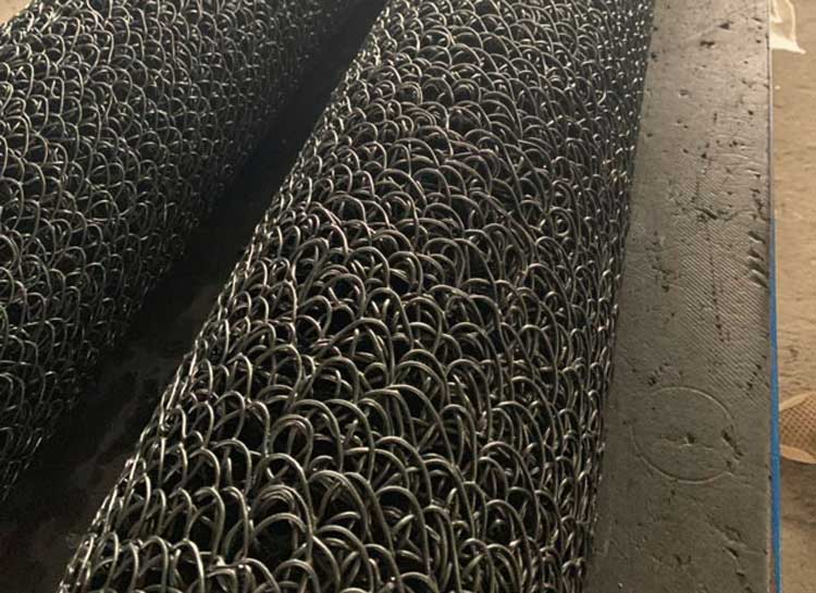 塑料盲溝是由塑料芯體外包裹濾布組式。塑料芯體是以熱可塑性合成樹脂為主要原料,經過改性,在熱熔狀態下,通過噴咀擠壓出細的塑料絲條,再通過成型裝置將擠出的塑料絲在結點上熔接,形成三維立體網狀結構。